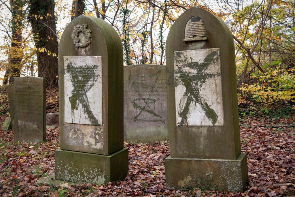 Et ledende medlem av Den nordiske motstandsbevegelse er blant to pågrepne for helgens hærverk mot jødiske symboler i Danmark, melder danske TV2.