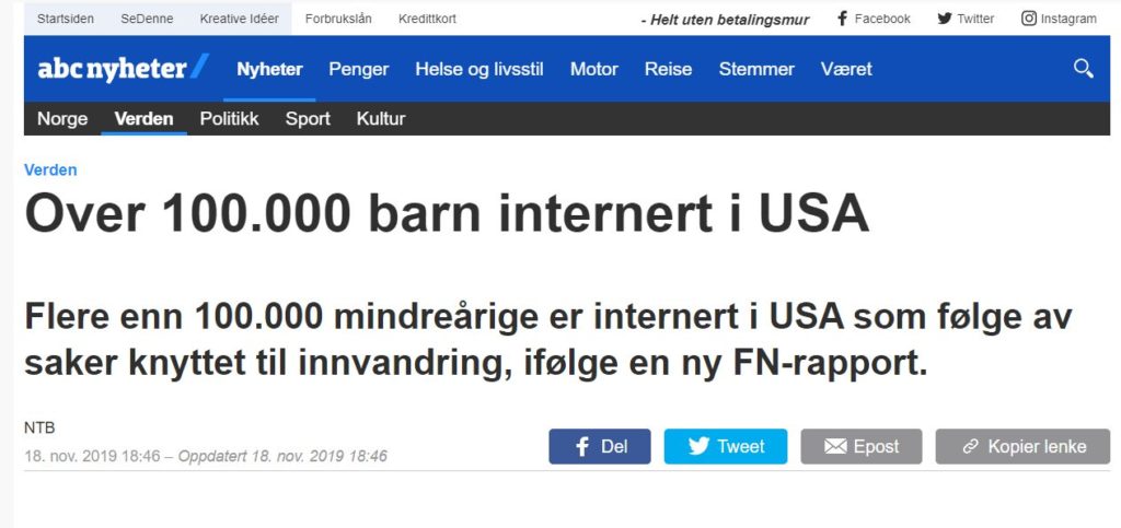 Nyhetsbyrået AFP trakk tirsdag en sak om at USA holdt mer enn 100.000 innvandrerbarn internert. Over ett døgn etter har NTB ennå ikke trukket sin sak med samme påstand.