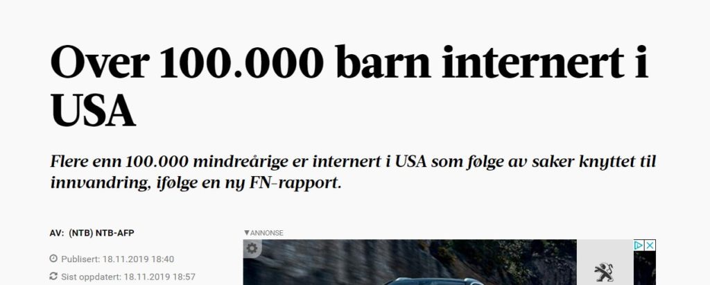 AFP-saken NTB siterer ble sendt ut mandag: More than 100,000 children in migration-related US detention: UN.