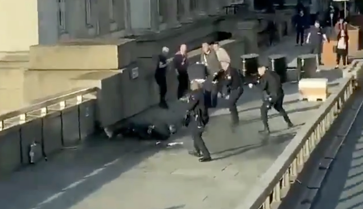 En BBC-journalist på stedet sier han så en gruppe menn som slåss på broen, at politiet kom til stedet, og at det ble avfyrt skudd. Bilder og video viser en rekke politibiler på broen, som er sperret av. Også ambulanser er på stedet.