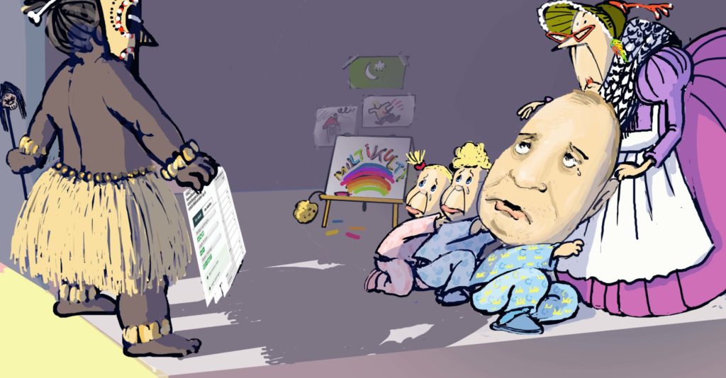 Hva er det som får politikere, talspersoner, geistlige, forskere og andre autoriteter til å møte realitetene med bagatelliserende flir og kulturrelativismens floskler? Vi stirrer på hverandre over klyftorna som skiller mellom lek, drøm og virkelighet.