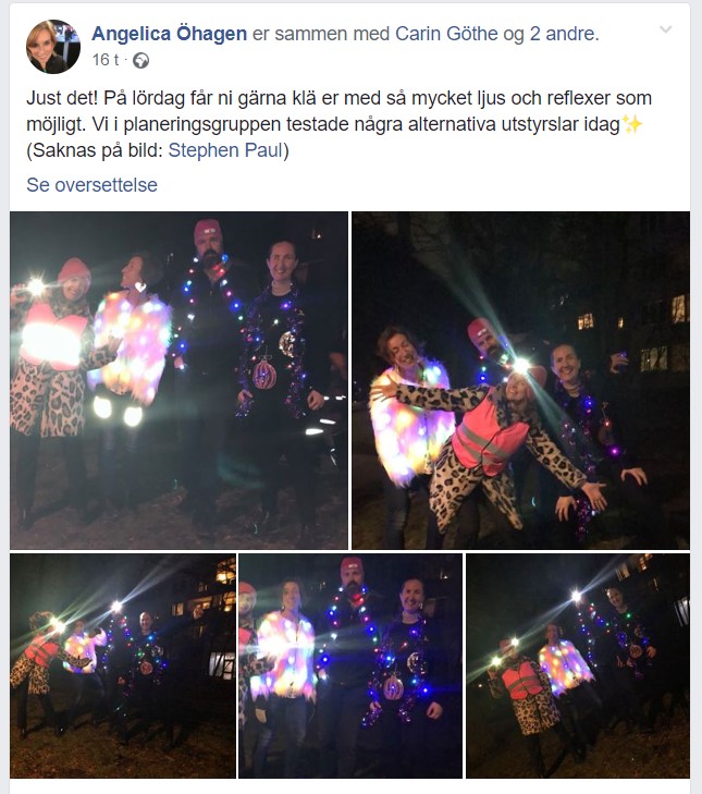 Deltakerne oppfordres til å ta på seg så mye lys og reflekser som mulig, så dette kommer til å bli kjempefestlig. Faren for at dette bare blir et førjulsjippo for en håndfull politisk korrekte mennesker, er overhengende, selv om refleks redder liv. I skrivende stund har 50 personer gitt beskjed om at de blir med. 139 er interessert. Dette tar helt av …