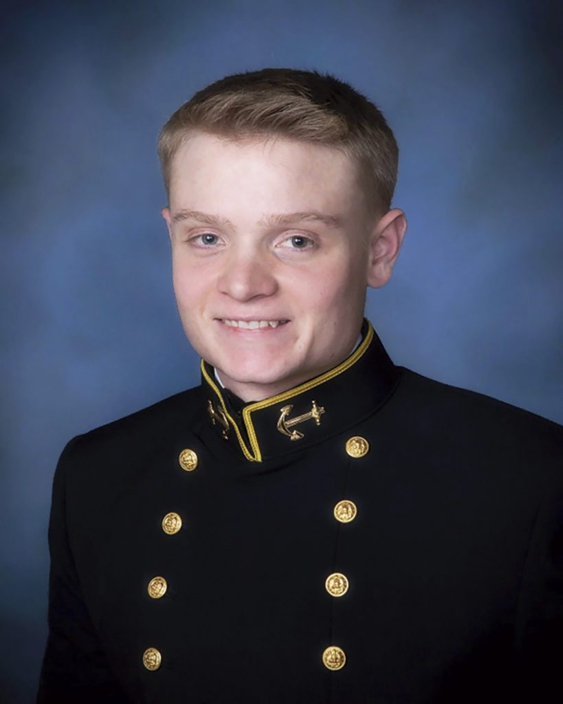 This undated photo provided by the U.S. Navy shows Ensign Joshua Kaleb Watson, from Coffee, Ala. Family members on Saturday identified one of the victims of a shooting at Naval Air Station Pensacola, Fla., as Watson, a 23-year-old recent graduate of the U.S. Naval Academy who alerted first responders to where the shooter was even after he had been shot several times. (U.S. Navy via AP)