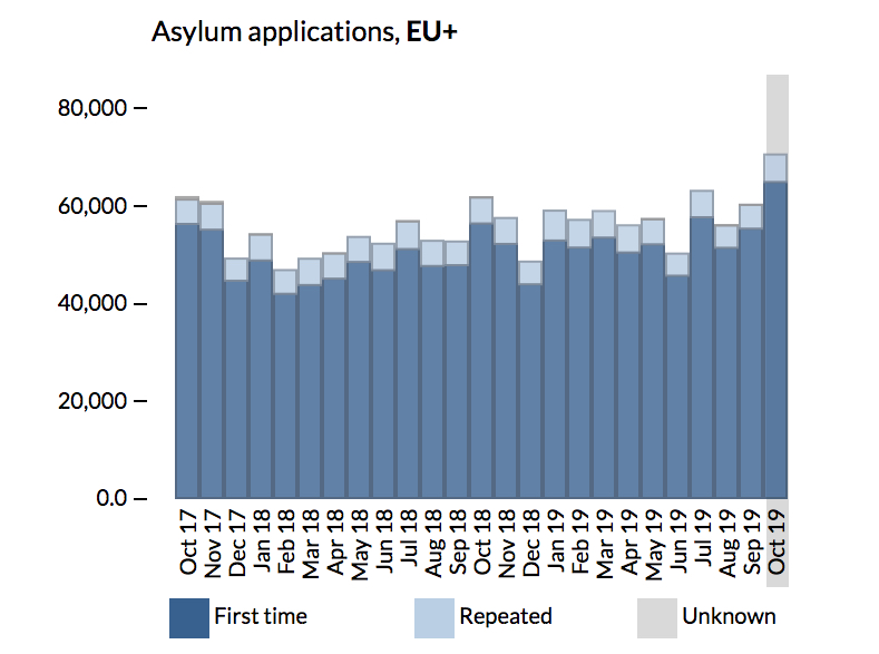For første gang siden migrasjonsbølgen i 2015 ligger Frankrike an til å motta flere asylsøkere enn Tyskland. Asylinnvandringen til Europa har stabilisert seg på et høyere nivå enn før migrasjonsbølgen. Antall nye asylsøknader i Europa i 2019 ligger an til å overstige 600.000.