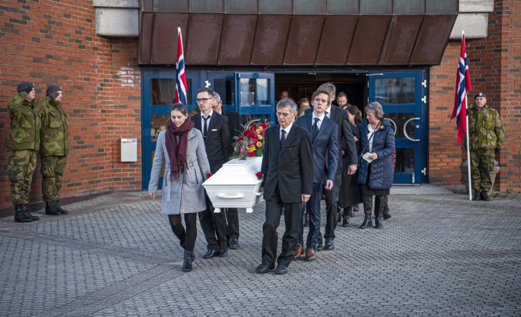 Ragnar Ulstein ble bisatt fra Spjelkavik kirke i Ålesund fredag. Kronprins Haakon, forsvarsminister Frank Bakke-Jensen (H) og representanter fra Forsvaret var til stede i begravelsen.
