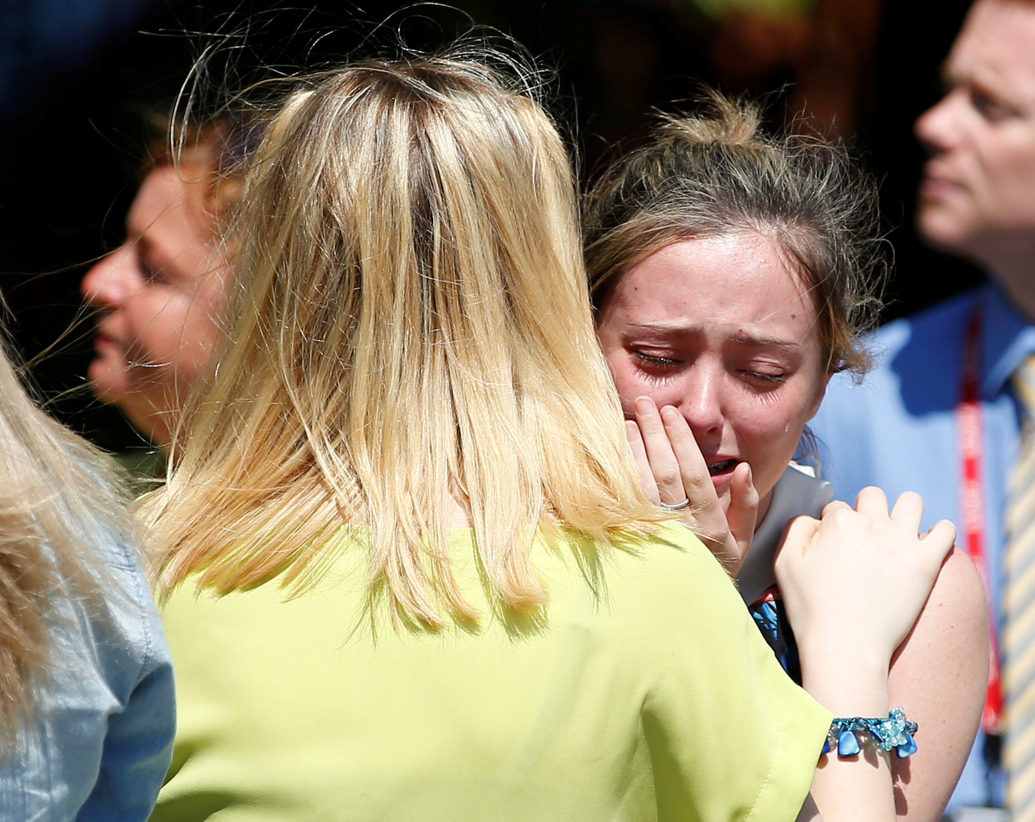 Elever utenfor Tottington high school etter drapet på skolevenninne Olivia Campbell som ble drept i Manchester Arena-angrepet i 2017. REUTERS/Andrew Yates