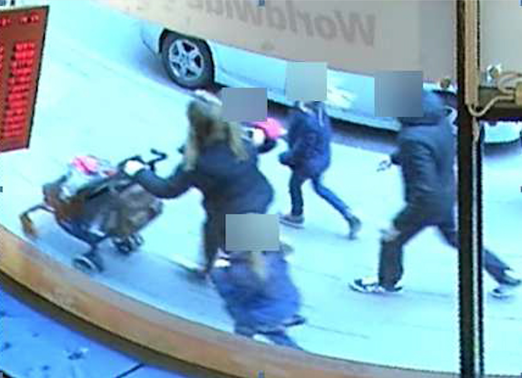 Bilde fra politiets protokoll over etterforskningen av terrorangrepet i Stockholm den 7. april 2017, der en familie flykter for ikke å bli rammet. Foto: Svensk politi / TT / Scanpix.