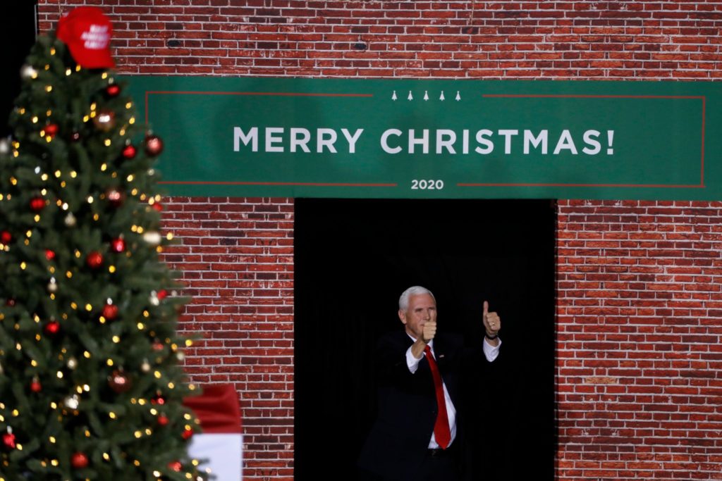 USAs visepresident Mike Pence ankommer et «Keep America Great»-arrangement på Kellogg Arena i Battle Creek, Michigan, 18. desember 2019. Foto: Jeff Kowalsky/AFP/NTB Scanpix