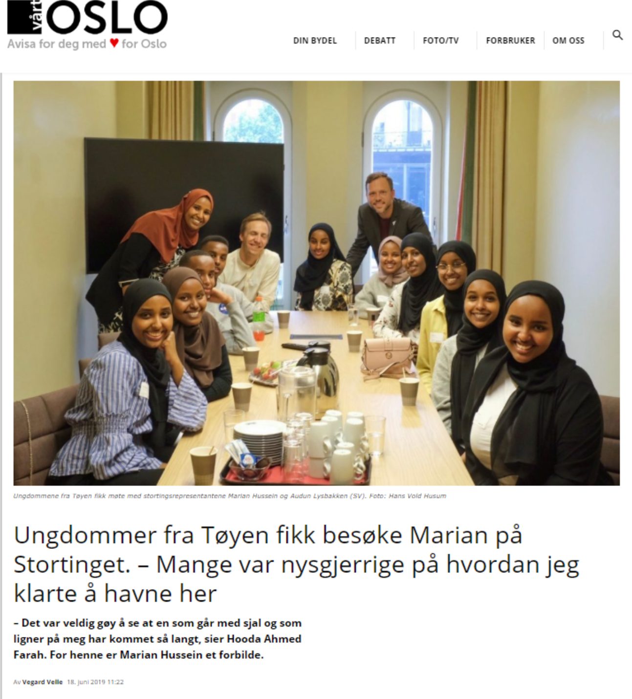 Blant de mer profilerte er vararepresentant Marian Hussein, som fikk den tvilsomme ære av å være den første kvinnen med hijab på hodet på Stortingets talerstol. Hussein har vist seg som en klassisk, venstre-militant SVer, som ville sensurere Stovnerrevyen, innføre forbud mot såkalt «islamofobi», som nektet å møte Documents redaktør til debatt og som blandet seg inn i NRKs redaksjonelle prioriteringer i forbindelse med Tore Sagens «rasisme»-stunt.