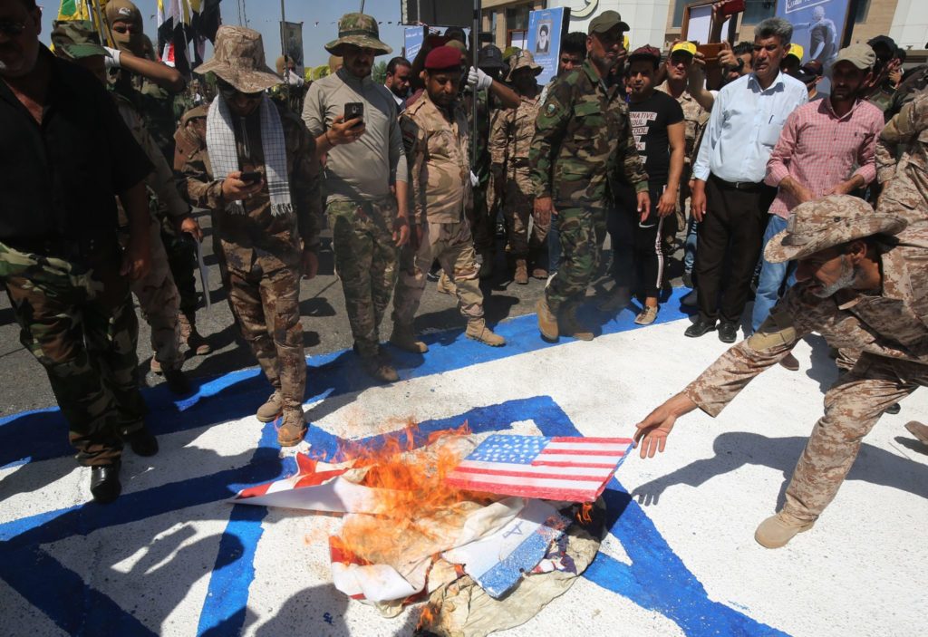 Også tidligere i år brant irakiske demonstranter det amerikanske flagget i protest (Photo by AHMAD AL-RUBAYE/AFP/NTB scanpix)
