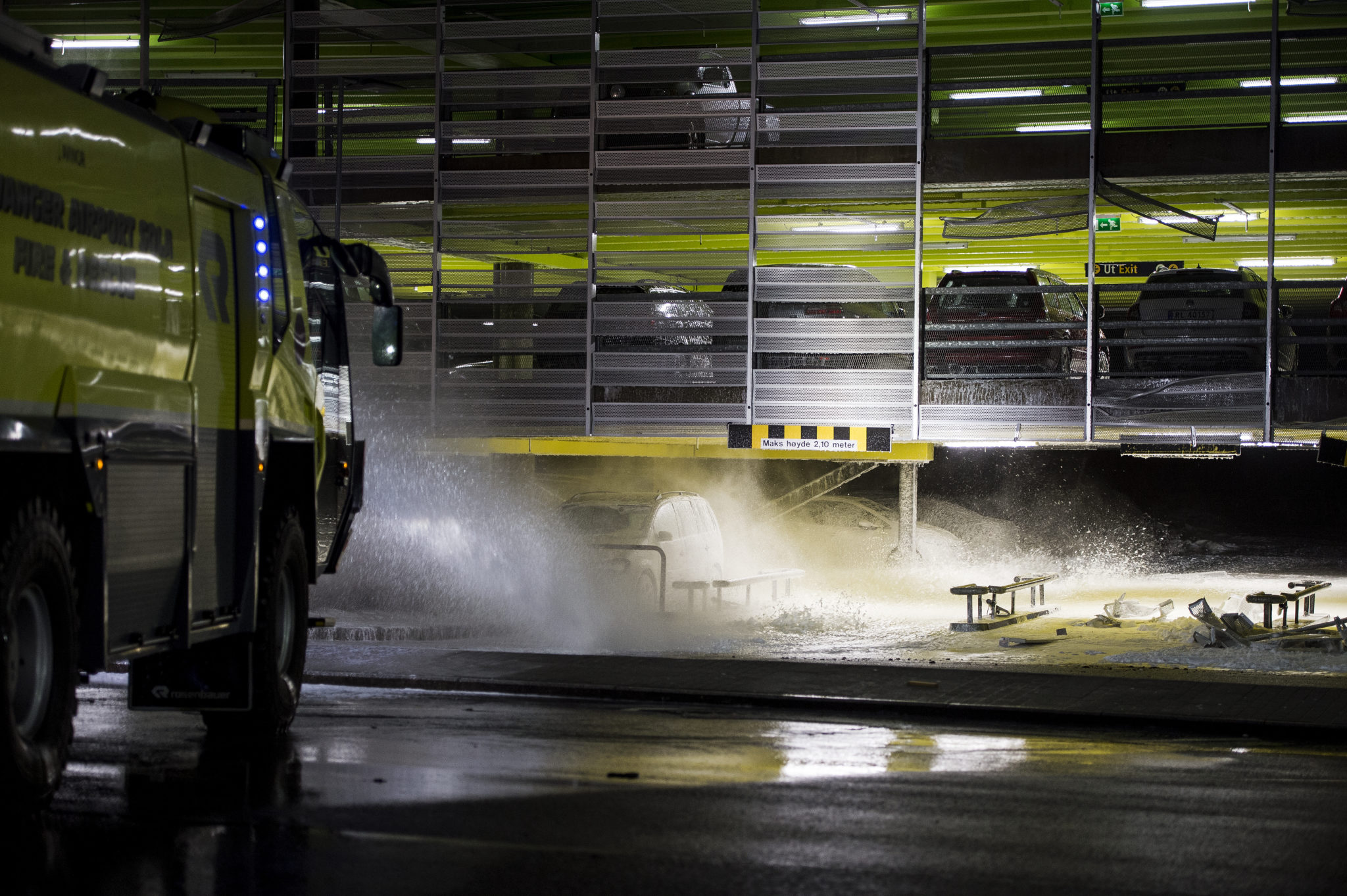 Arbeidet med å slokke og sikre det utbrente parkeringshuset ved Sola lufthavn vil ta betydelig tid.