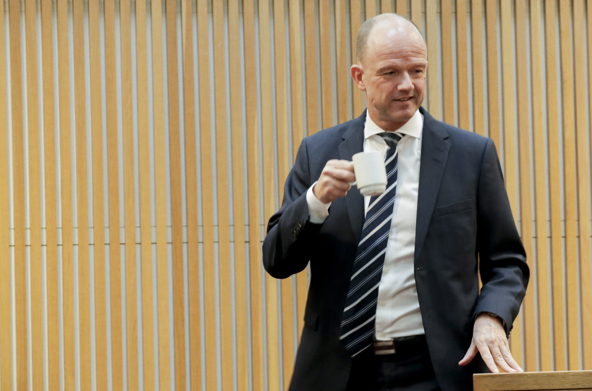 Administrerende direktør Ole Erik Almlid i NHO, har pressekonferanse om årets årskonferanse, som i år er kalt Neste trekk.
