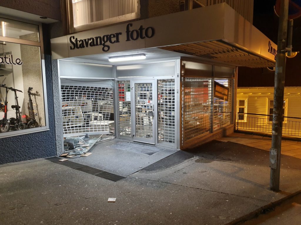 Gjerningsmennene er fortsatt på frifot etter at en bil rygget inn Stavanger Foto natt til fredag. Kameraer for over en million kroner er stjålet.