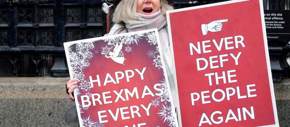 Beskjeden til Parlamentet er krystallklar. Den ble avlevert 17. desember. Nå kan damen snart legge ned plakaten. Seieren er vunnet. Foto: Toby Melville/Reuters/Scanpix