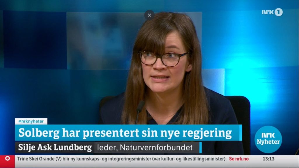 I intervjuet på NRK snakker Silje Ask Lundberg i Naturvernforbundet om hva hun forventer at Norge nå skal gjøre med de nye ministrene på plass: