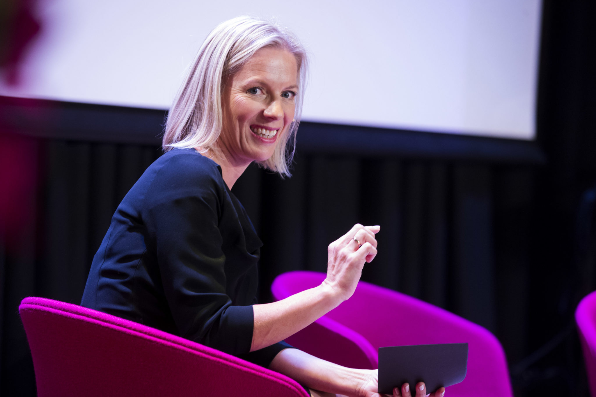 Marte Gerhardsen er utdanningsdirektør i utdanningsetaten i Oslo kommune. Her som konferansier under Framtidskonferansen i 2016. Foto: Håkon Mosvold Larsen/Scanpix
