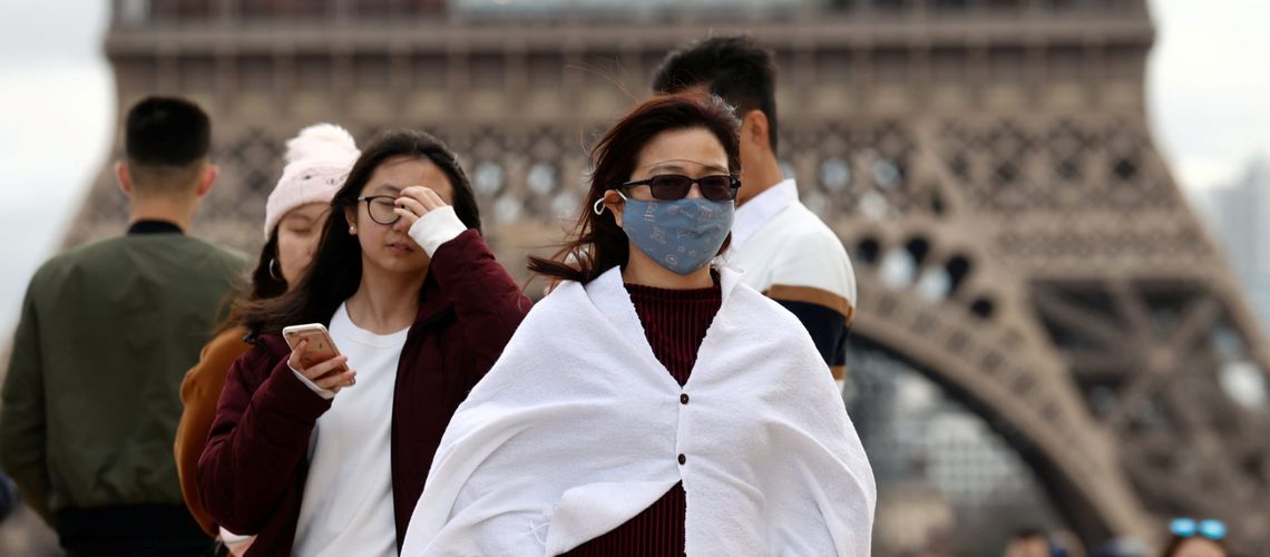 Over hele verden går folk med ansiktsmasker, reiser kanselleres og folk settes i karantene, og alt forbindes med Kina. Det er bad for business. Fra esplanaden foran Eiffel-tårnet i Paris 1. februar. Foto: Gonzalo Fuentes/Reuters/Scanpix