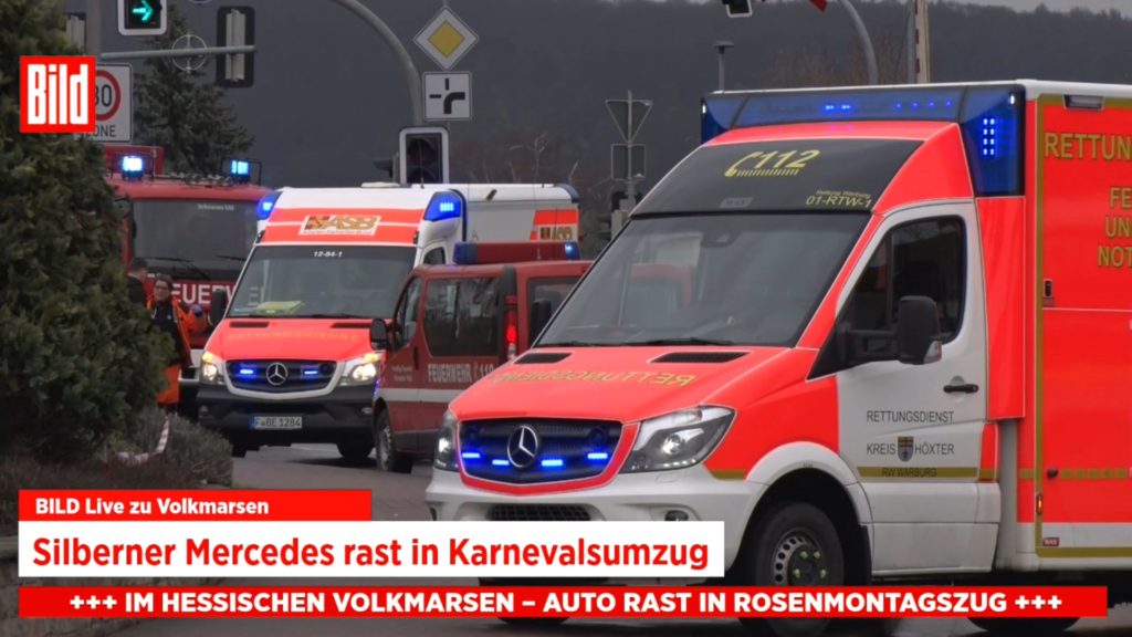 En bil har kjørt inn i en folkemengde under en karnevalsfeiring i en by i Hessen i Tyskland. Flere personer er skadd, opplyser politiet.