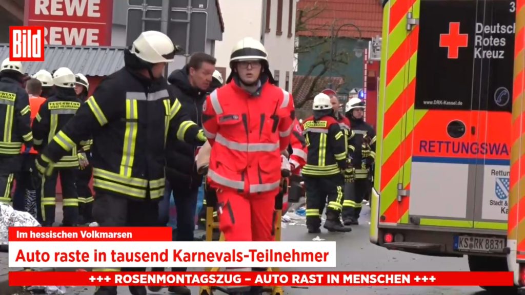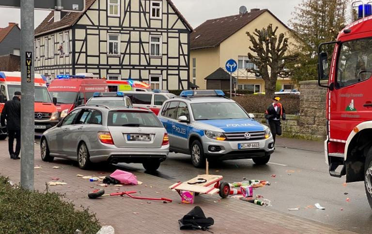 Mer enn 30 er såret etter at en bil mandag kjørte inn i en karnevalsparade i Volkmarsen i Hessen i Tyskland. Øyenvitner sier at bilføreren så ut til å sikte på barn.