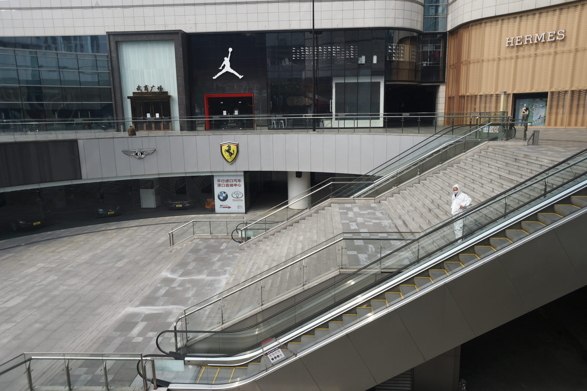 Et shoppingsenter i Wuhan, Kina, 25. februar tyder ikke akkurat på at epidemien har nådd toppen. Foto: stringer/Reuters/Scanpix