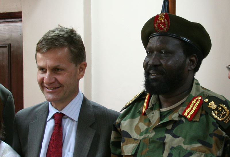 Norges utviklingsminister Erik Solheim på besøk hos Sør-Sudans president Salva Kiir i juni 2009. Foto: Stein Ove Korneliussen / Wikimedia Commons.