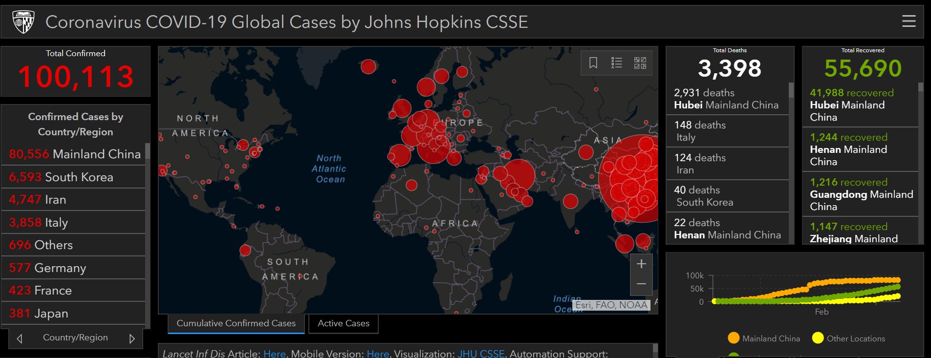 Fredag 6. mars passerte antallet korona-smittede i Norge 100, mens verden for øvrig passerte 100.000. Viruset ble første gang registrert i Kina, 1. desember 2019.