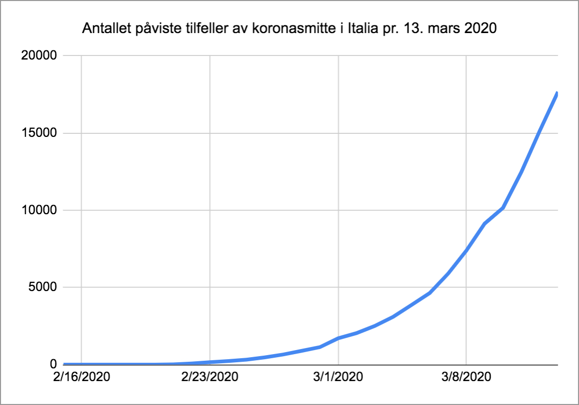 I Lombardia, koronaepidemiens episenter i Italia, er det nå offisielt at antall koronasmittede har avtagende veksthastighet. Antallet smittetilfeller vil fremdeles øke kraftig i Italia, men kanskje veksten har begynnende utflatning.