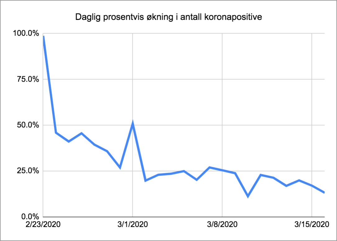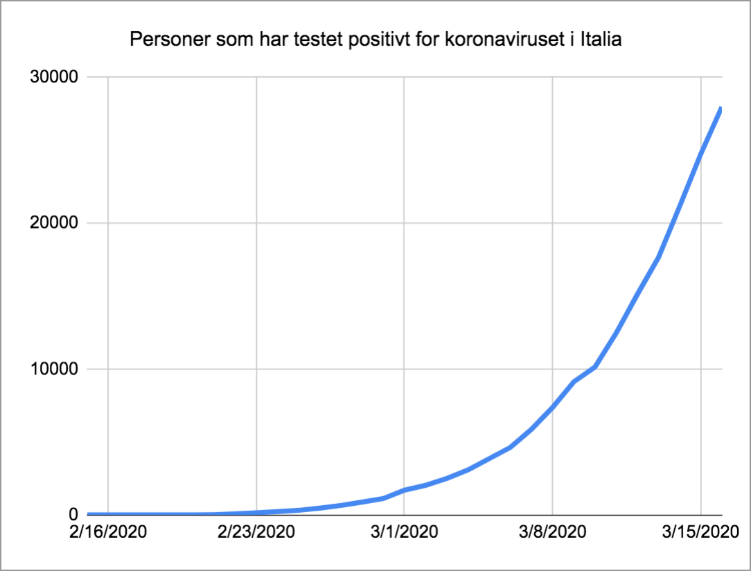 Dystre tall over antall smittede og døde i Italia gjør inntrykk, men italienske myndigheter tilkjennegir likevel en viss, forsiktig optimisme. Statistikken synes å antyde at det er lys i tunellen. Den prosentvise veksten i antall smittede synker, og det virker plausibelt med en utflatning i løpet av uker.