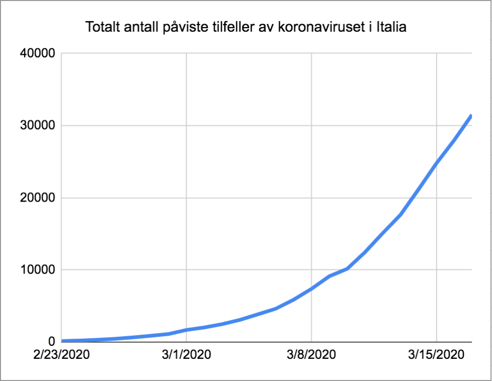 Målt i antall tilfeller er økningen nokså lineær de siste fem døgnene, hvilket alt tatt i betraktning burde bære bud om at en begynnende utflatning ikke er så mange dagene unna.