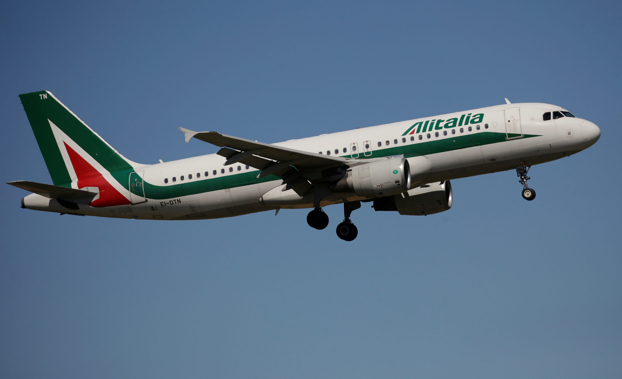 En Airbus-maskin tilhørende Alitalia går inn for landing ved Fiumicino-flyplassen utenfor Roma den 3. mai 2017. Foto: Max Rossi / Reuters / Scanpix.