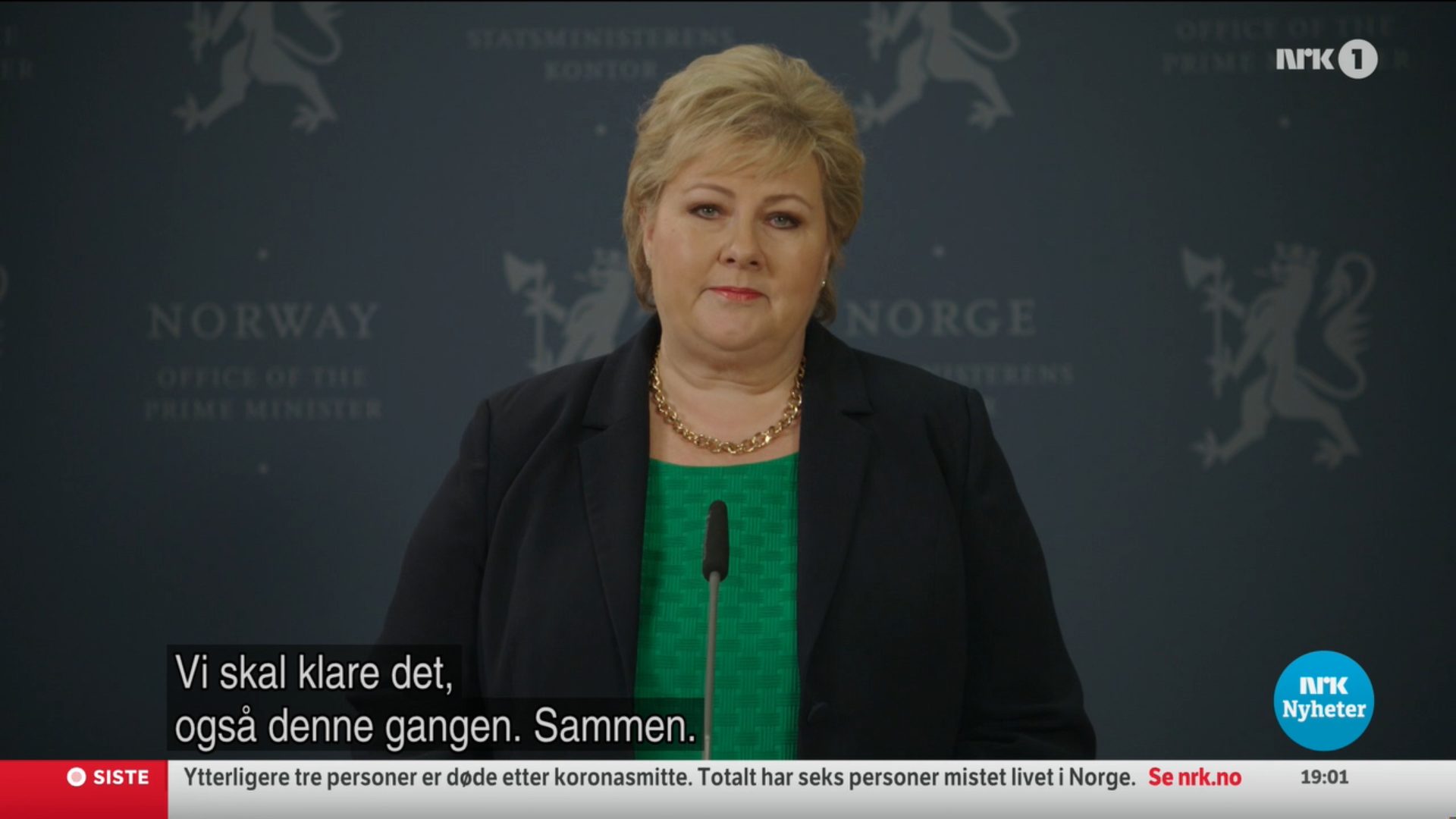 – Vi har alle sammen en jobb å gjøre, sier statsminister Erna Solberg (H). Hun ber folk om å stå sammen i kampen mot koronaviruset.