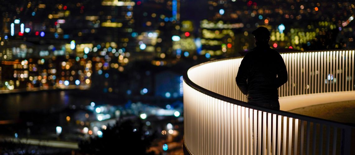 En enslig mann ser ut over Oslo fra Ekebergrestauranten tirsdag 24. mars. Som en følge av Korona-pandemien er det innført forbud mot at flere enn 5 personer møtes. Mens globetrotteren Erik Solheim synes det er «brilliant» at koronaviruset lærer folket å leve slik han og klima-sekten drømmer om, har antall arbeidsledige på NAV eksplodert til nesten 300.000. Effekten av å stenge ned Norge har bare så vidt begynt, men denne «dugnaden» rammer ikke arbeidstagere likt: Når dette blåser over, vil det private næringslivet i Norge bli enda mindre attraktivt. Foto: Cornelius Poppe / NTB scanpix