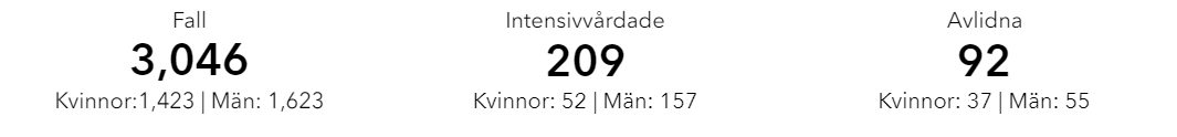 Tallene viser kun de som er blitt testet for smitte. Sverige har kun testet rundt 24.500 personer så langt.