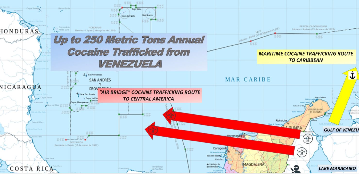 USA har i lengre tid anklaget Maduro og hans regjering for å bruke inntekter fra narkotikahandel til å kompensere for tapte inntekter, inntekter landet har mistet som følge av USAs harde sanksjoner mot Venezuela. Også partitopp Diosdado Cabello i sosialistpartiet, som også er leder av landets nasjonalforsamling, omfattes av anklagene som går ut på at han skal ha «oversvømt USA med kokain» og å brukt narkotika som et «våpen» mot landet.