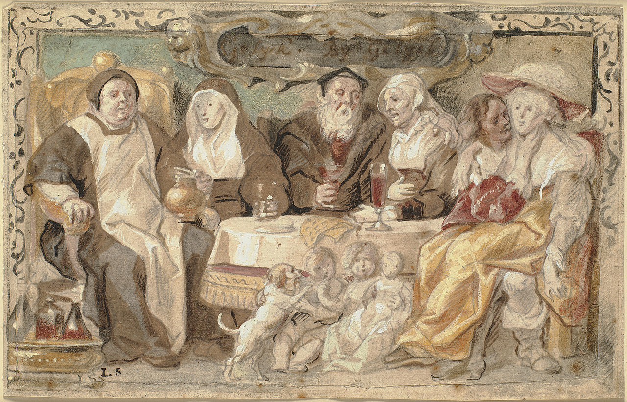 I flere av sine bilder illustrerer Jordaens ordspråk, med vennlig humor. Her har han tatt for seg det vi her kjenner som Like barn leker best – eller like gjerne Krake søker make. Bildet er muligens en forstudie til et større maleri, eller et gobelin.