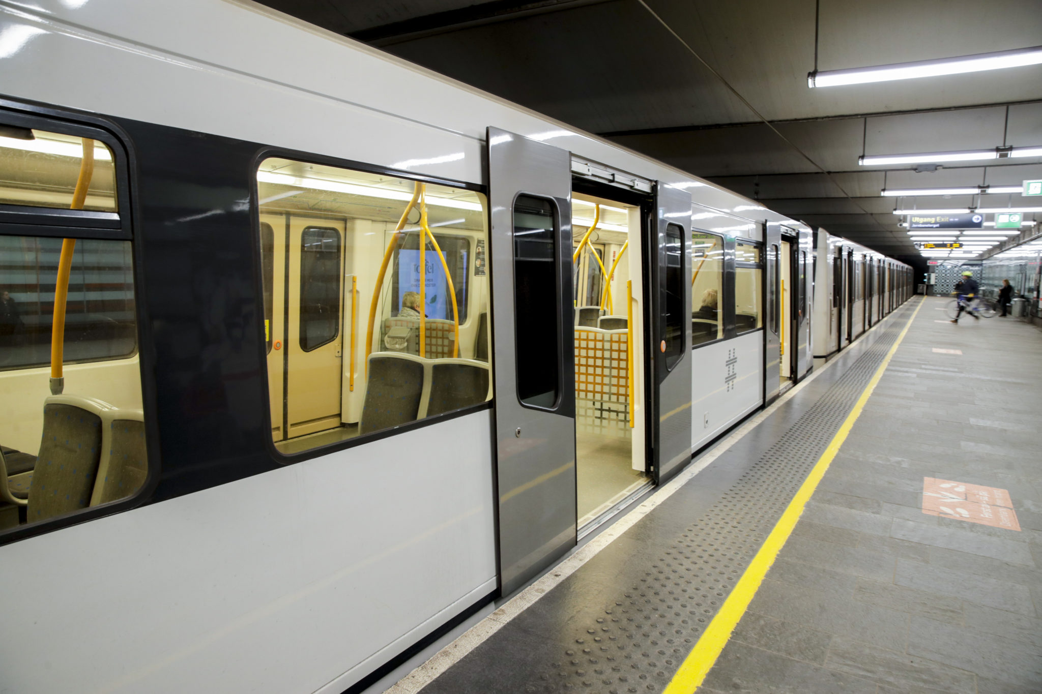 På Jernbanetorget T-banestasjon mandag morgen klokken 08 mandag 23. mars var det folketomt både på T-banen og perrongen. Det merkes i kassen til kollektivselskapene. Foto: Vidar Ruud / NTB Scanpix