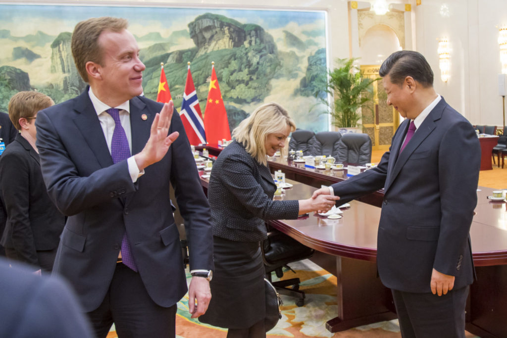 I håp om å selge mer laks til Kina er vårt eget land derimot skremt til offisiell lammelse og lydighet etter Kinas iskalde reaksjon på utdelingen av Nobels fredspris til Liu Xiaobo i 2010. Og vår egen statsminister er i praksis blitt en kinesisk påvirkningsagent: Under sikkerhetskonferansen i München sa hun at Norge er i en «mellomstilling» i striden mellom USA og Kina.