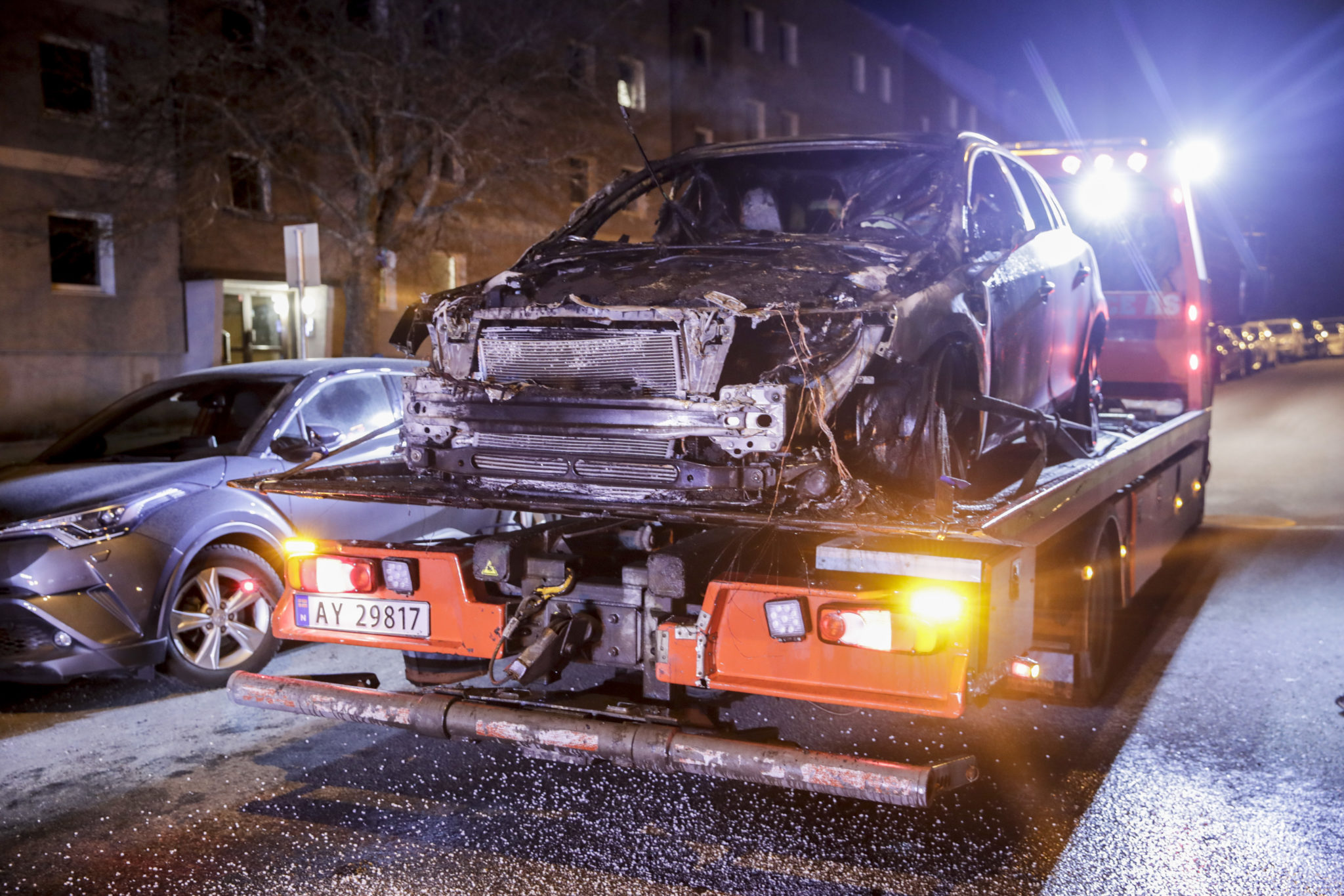 En bil er totalskadd og to andre fikk skader på Bogerud i Oslo natt til torsdag. Politiet søkte uten hell etter en person som ble sett løpende fra stedet.