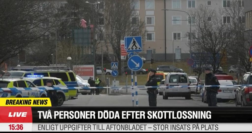To personer ble tirsdag ettermiddag skutt og drept i Vällingby i vestre Stockholm.