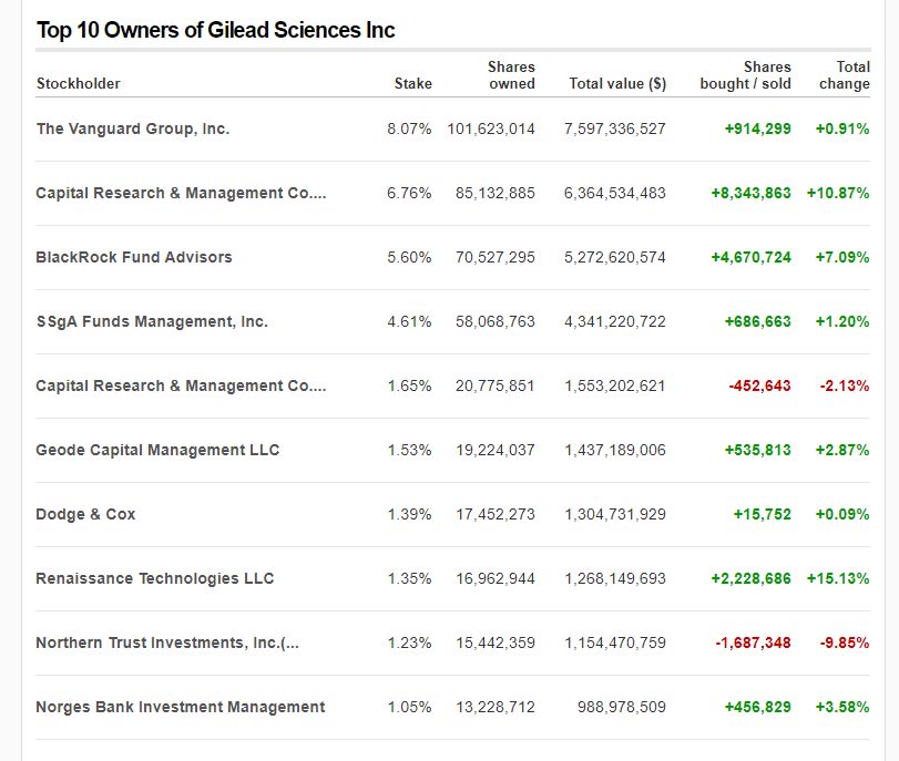 De ti største eierne av Gilead Services Inc. Skjermdump: CNN