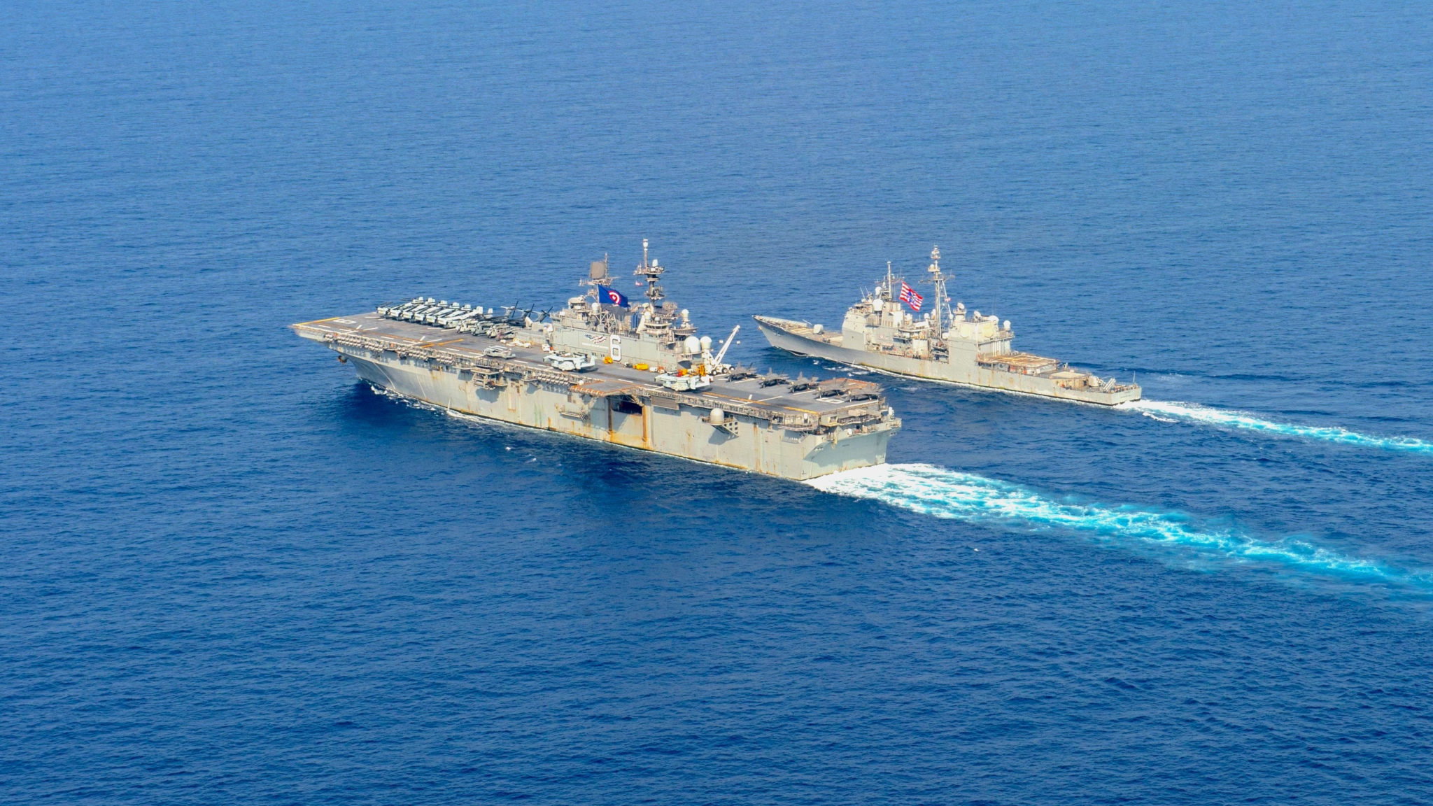 To amerikanske krigsskip, amfibiekrigsskipet USS «America» og krysseren USS «Bunker Hill», har navigert inn i de omstridte farvannene i Sør-Kinahavet som blant andre Kina gjør krav på, har det amerikanske forsvarsdepartmentets talskvinne Nicole Schwegman kunngjort tirsdag.