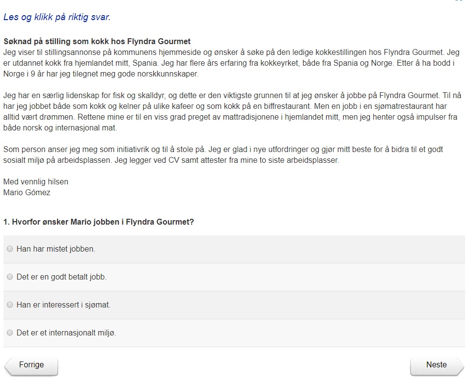 Og her er et eksempel på A1-A2, som er nivået de fleste innvandrere er på ved avsluttet kurs.