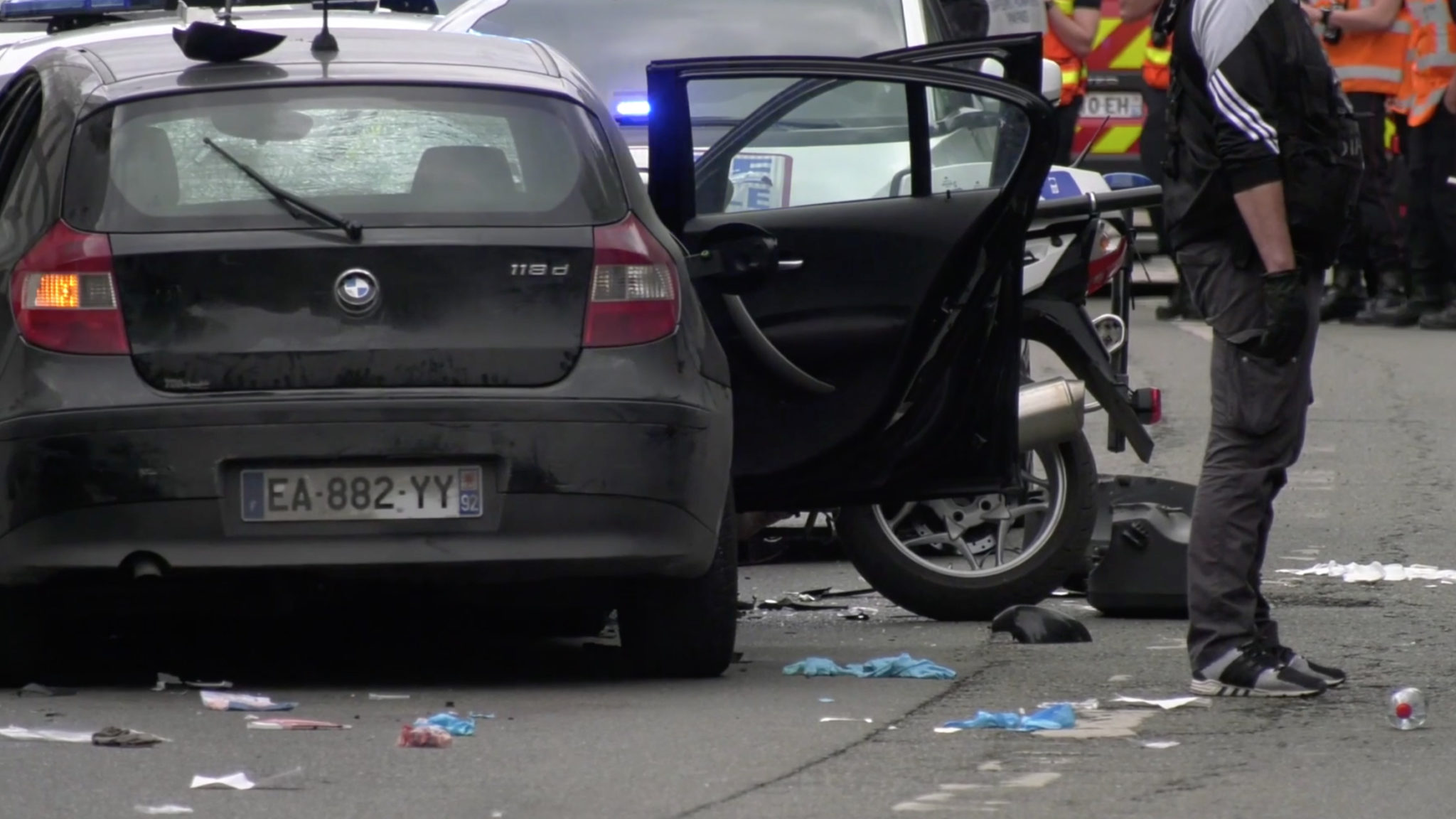 To franske politifolk på motorsykkel som mandag ettermiddag foretok rutinekontroller i Paris-forstaden Colombes, ville i 17:30-tiden stanse en mann på scooter. Forsøket var forgjeves da mannen stakk av fra kontrollen.