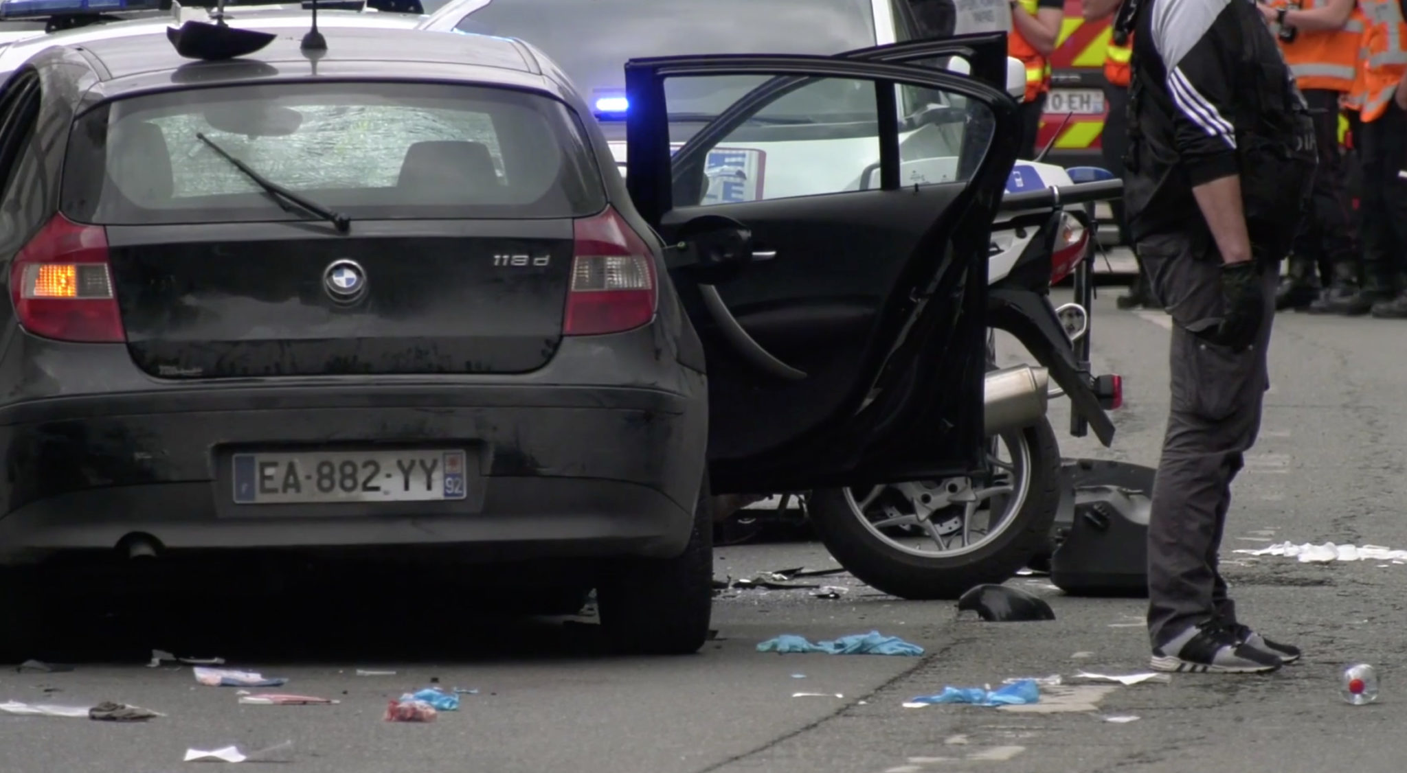 Fransk påtalemyndighet har startet terroretterforskning av en mann som hevder å være tilknyttet IS, og som kjørte inn i en politipost i Paris. To ble såret.