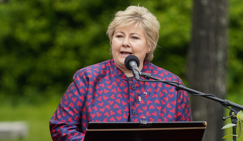 Statsminister Erna Solberg (H) kaster seg inn i debatten om jakkemerker med en kjærlighetserklæring til flagget som symbol for frigjøringen.