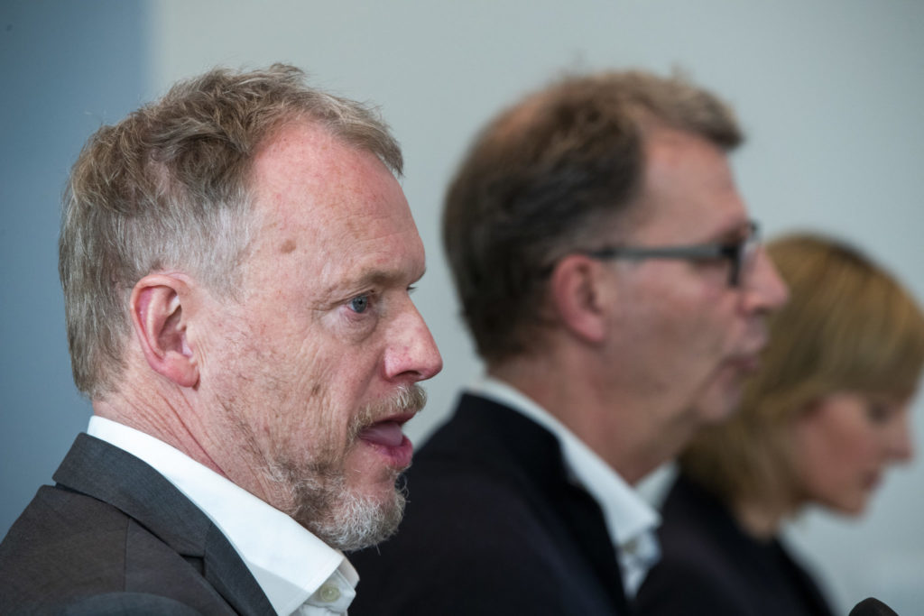 Byrådsleder Raymond Johansen, helsebyråd Robert Steen og oppvekst- og kunnskapsbyråd Inga Marte Thorkildsen orienterer om håndtering av koronaviruset og presentere nye tiltak knyttet til koronasmitte i Oslo 11. mars.Foto: Terje Pedersen / NTB scanpix