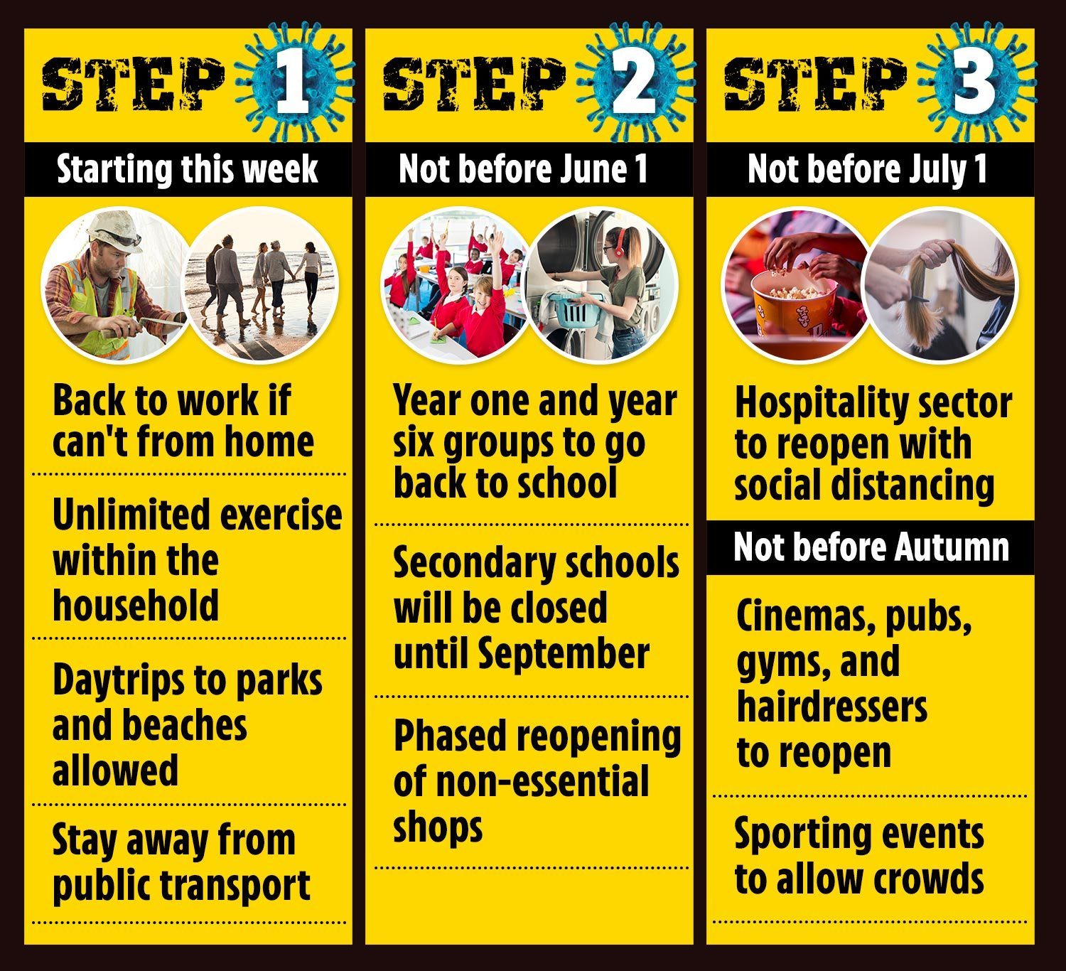 Labour, med Sir Keir Starmer i spissen, oppfordrer folk til ikke å lytte til regjeringens melding om å gå tilbake på jobb. Det er også et problem at skolene holder stengt frem til 1. juni når foreldre må tilbake på jobb. Og det er kun to klassetrinn i barneskolen som det åpnes for. Hvem skal passe barna hvis arbeidere må reise på jobb? Regjeringen har også bedt folk om å unngå å reise kollektivt. Hvilket er svært vanskelig for mange, spesielt i London.