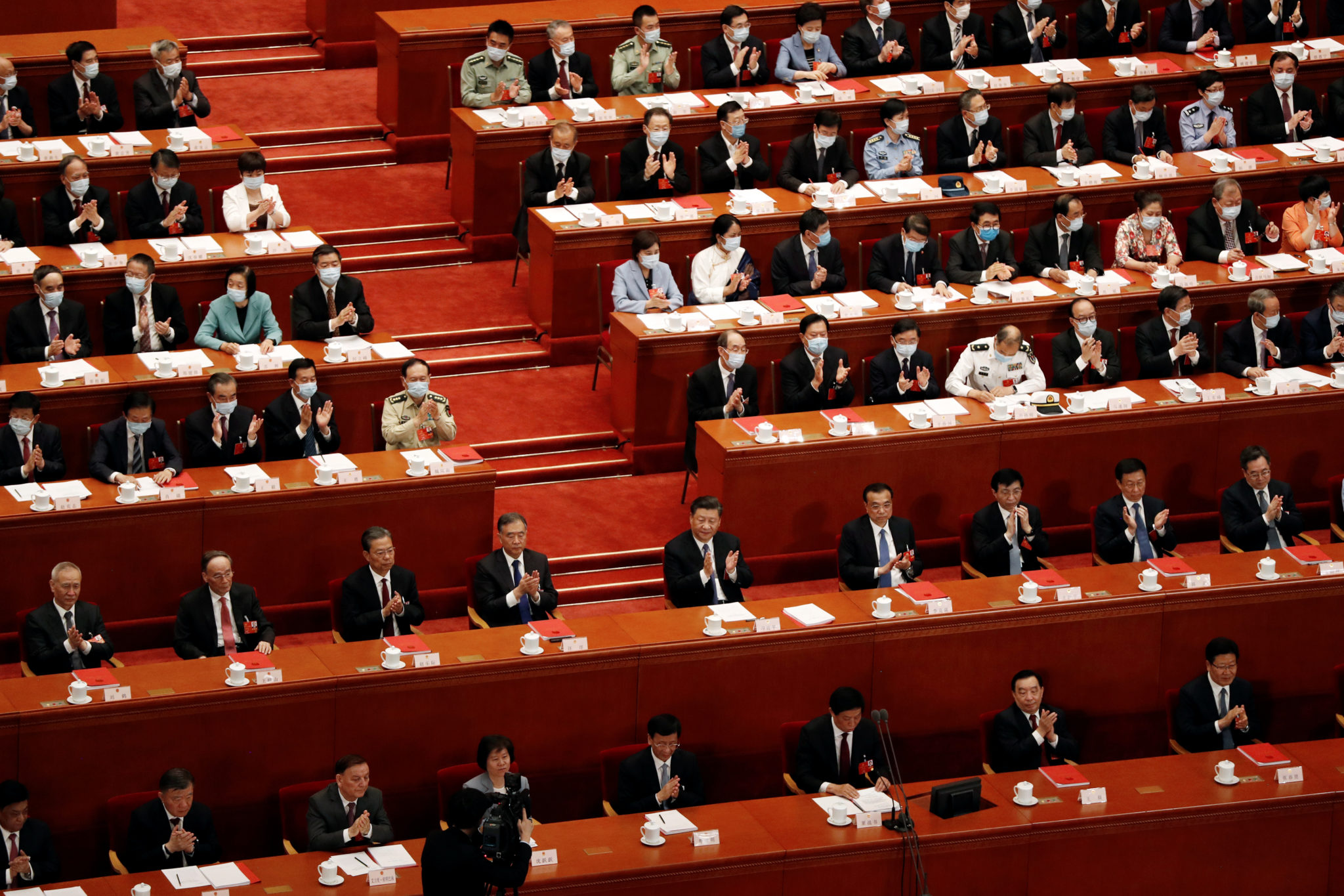 Folkekongressen klapper for at sikkerhetsloven er vedtatt torsdag 28. mai. Foto: Carlos Garcia Rawlins/Reuters/Scanpix