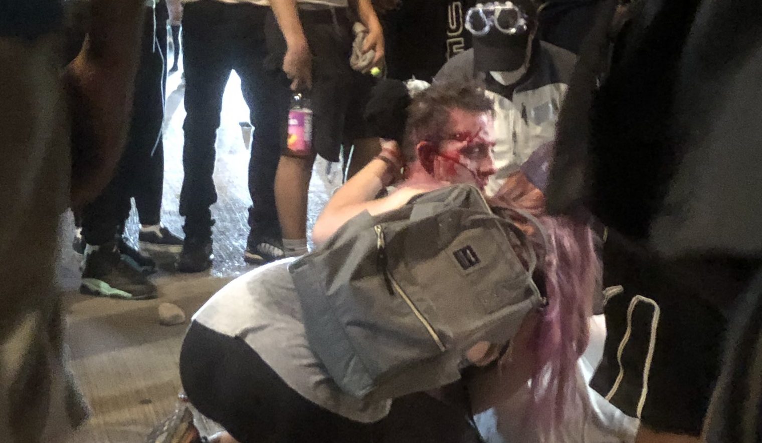 En mann som forsøkte å forsvare butikken sin i Dallas med et sverd, ble nesten slått ihjel av mobben.