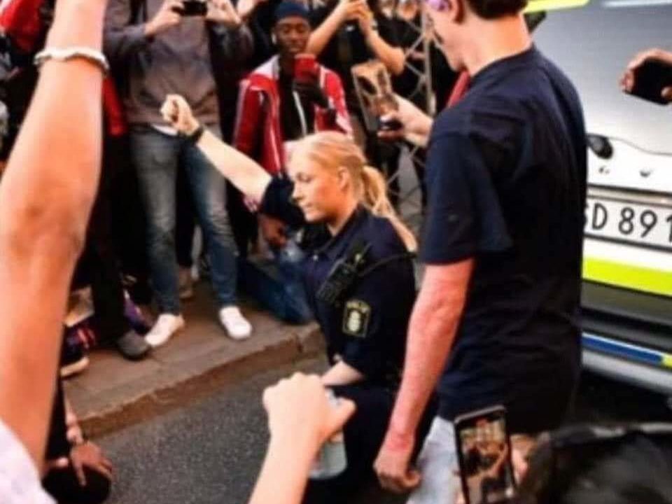 Politiet passet på å bidra ved å bøye kne for demonstrantene, skriver Bitte Assarmo på Det Goda Samhället.